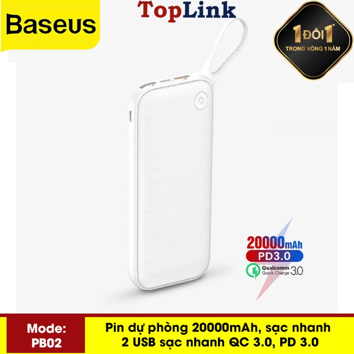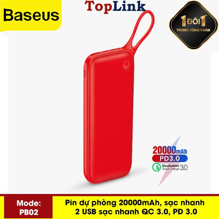 Giới thiệu [Mã ELMALL150 giảm 8% đơn 500K] Pin Dự Phòng 20000mah Baseus PB02 Sạc Nhanh Cổng PD 3.0 Sạc 2 Chiều Và Qualcomm QC 3.0