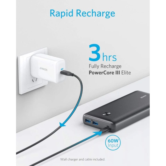 Pin dự phòng ANKER A1290 PowerCore III Elite 25600mAh 60W PD Dành cho điện thoại iPhone iP Xiaomi Huawei Samsung Oppo