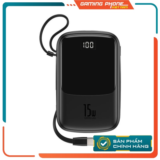 Pin dự phòng Baseus 15w 10000 mAH liền cáp sạc 3A IP chính hãng