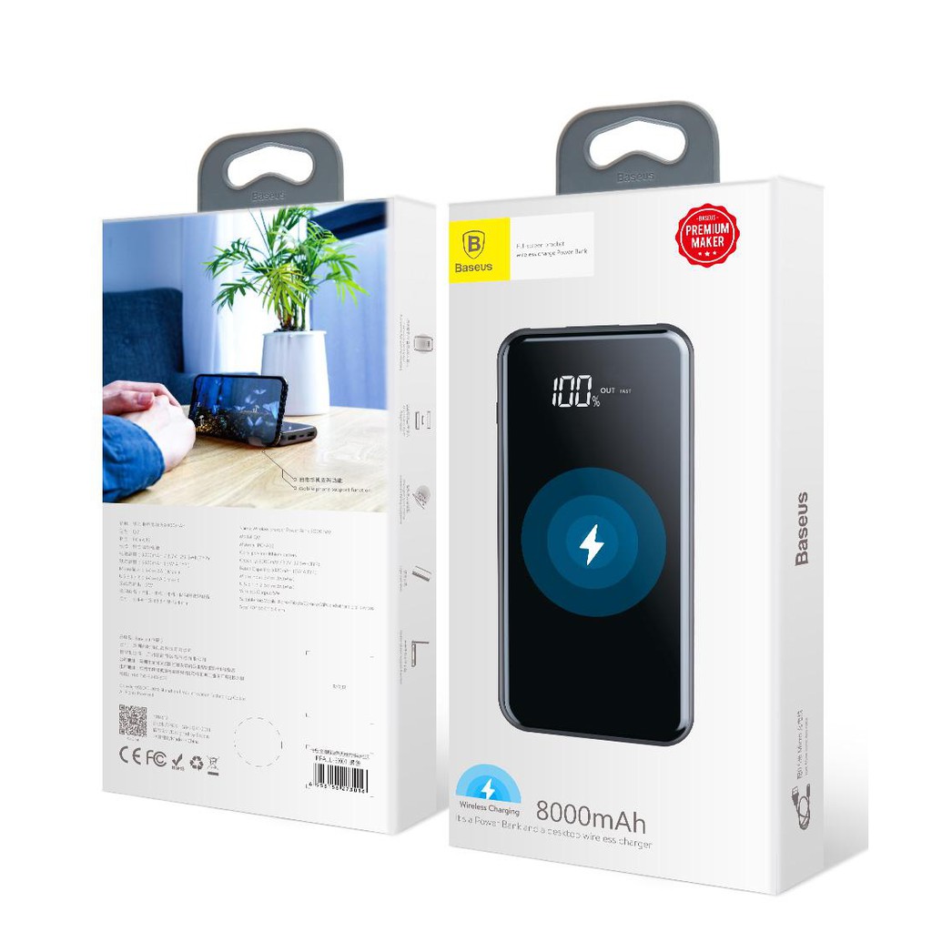 Điện Thoại & Phụ Kiện > Pin sạc dự phòng > >20000mAh || Pin Dự Phòng Basues 8000mah Kiêm Sạc Không Dây 2 Cổng USB, Thiết Kế Nhỏ Gọn, Sạc Được Nhiều Thiết Bị Cùng LúcCòn hàng
