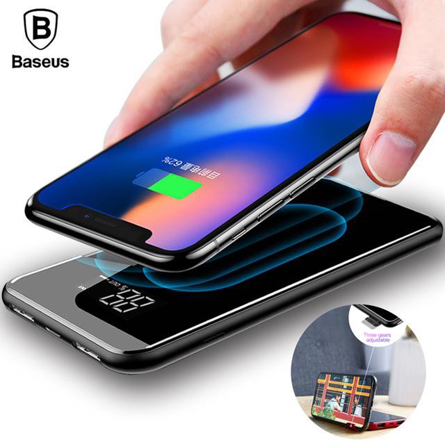 [Mã 154ELSALE2 giảm 7% đơn 300K] Pin Dự Phòng Basues 8000mah Kiêm Sạc Không Dây 2 Cổng USB, Thiết Kế Nhỏ Gọn, Sạc Được N