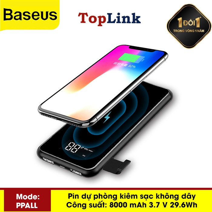 Pin Dự Phòng Basues 8000mah Kiêm Sạc Không Dây 2 Cổng USB, Thiết Kế Nhỏ Gọn, Sạc Được Nhiều Thiết Bị Cùng LúcChào mừng bạn đến với TOPLINK - Thế Giới Phụ Kiện