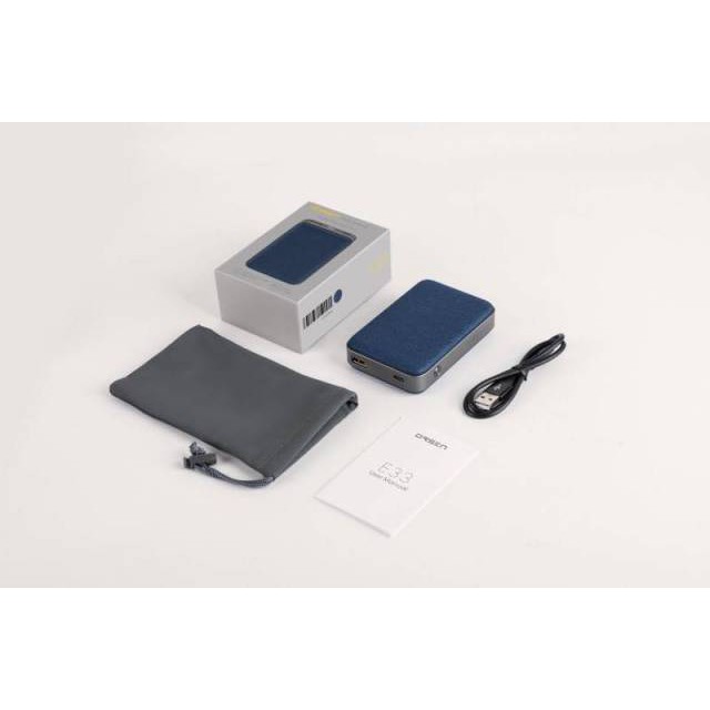- E33 có dung lượng 10.000mAh thiết kế nhỏ gọn, vừa tay, dùng công nghệ pin Li-Po tốt nhất, mới nhất, hiện đại nhất cho tới thời điểm này.