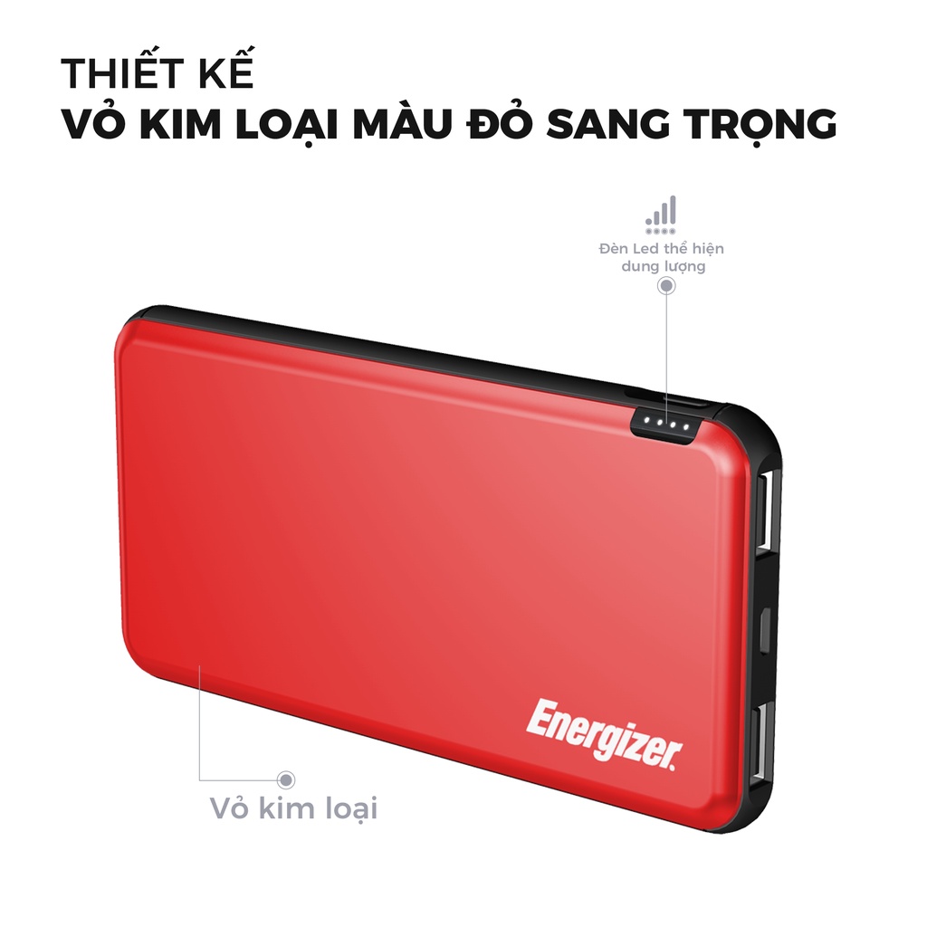 Pin dự phòng Energizer Chiến Binh II 10000mAh UE10046RD - thiết kế gọn nhẹ, tích hợp 2 cổng output tiện lợi