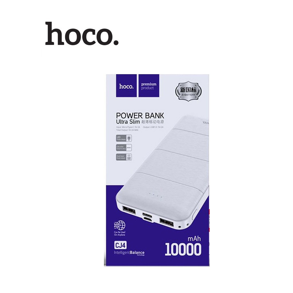 Pin dự phòng Hoco CJ4 đèn LED báo sạc 2 cổng USB và Type-C dung lượng 10000mAh"Bảo hành: 12 tháng, 1 đổi 1 trong tháng đầu nếu lỗi do nhà sản xuất.