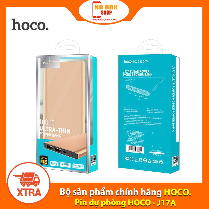 Điện Thoại & Phụ Kiện > Pin sạc dự phòng > 5000 - 10000mAh || Pin dự phòng HOCO J17A Clear dung lượng 10000 mAh(Tặng mã Freeship Extra toàn quốc)Còn hàng
