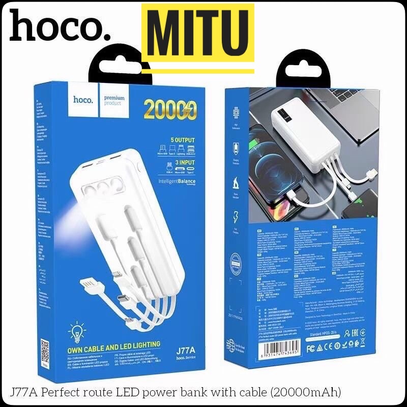 Giới thiệu Pin dự phòng Hoco J77A 20000mAh có màn hình LED, 2 cổng USB, 3 dây sạc, có đèn pin - CHÍNH HÃNG