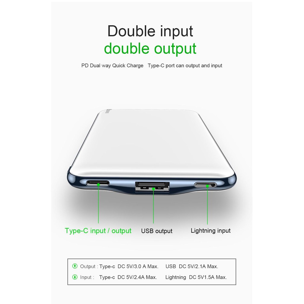 Pin Dự Phòng Thương Hiệu Baseus M21 Cao Cấp Dung Lượng 10000mah Công Nghệ Sạc Nhanh Cổng PD 3.0 Sạc 2 Chiều Và Qualcomm QC 3.0 Thiết Kế Đẹp Độc Đáo Siêu Mỏng Như Iphone X Khung Viền Hơp KimMô tả sản phẩm