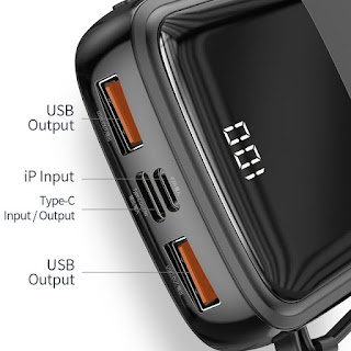 Pin sạc dự phòng dung lượng 10,000mAh.Tích hợp cáp sạc iPhone .