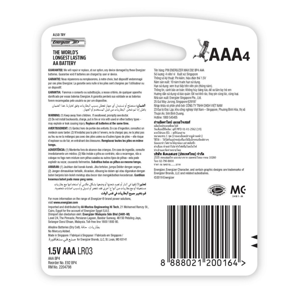 Pin Energizer Max AAA E92 BP4 - 100193487