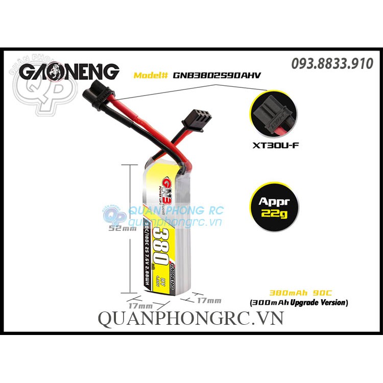 Pin GNB 380mAh 2S 90C 7.6V LiHV