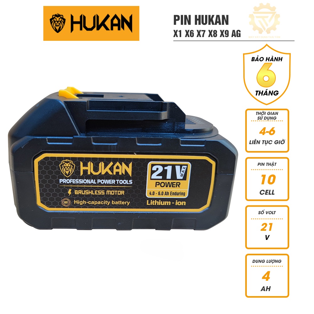 Pin HUKAN 10cell 21V có đèn báo pin chân pin phổ thông dung lượng cao 3.2Ah phù hợp cho dòng máy khoan X1 X6 X7 X8 X9 AG-PR99 cưa máy---------------------------------------------------------