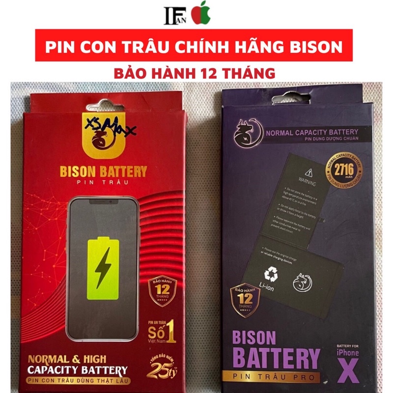 PIN IPHONE CON TRÂU BISON 5/5S/5SE/6/6P/6S/6SP/7/7P/8/8P/X/Xs/XR/XsMax/SE2 Tặng Bộ Vít Tháo Lắp
