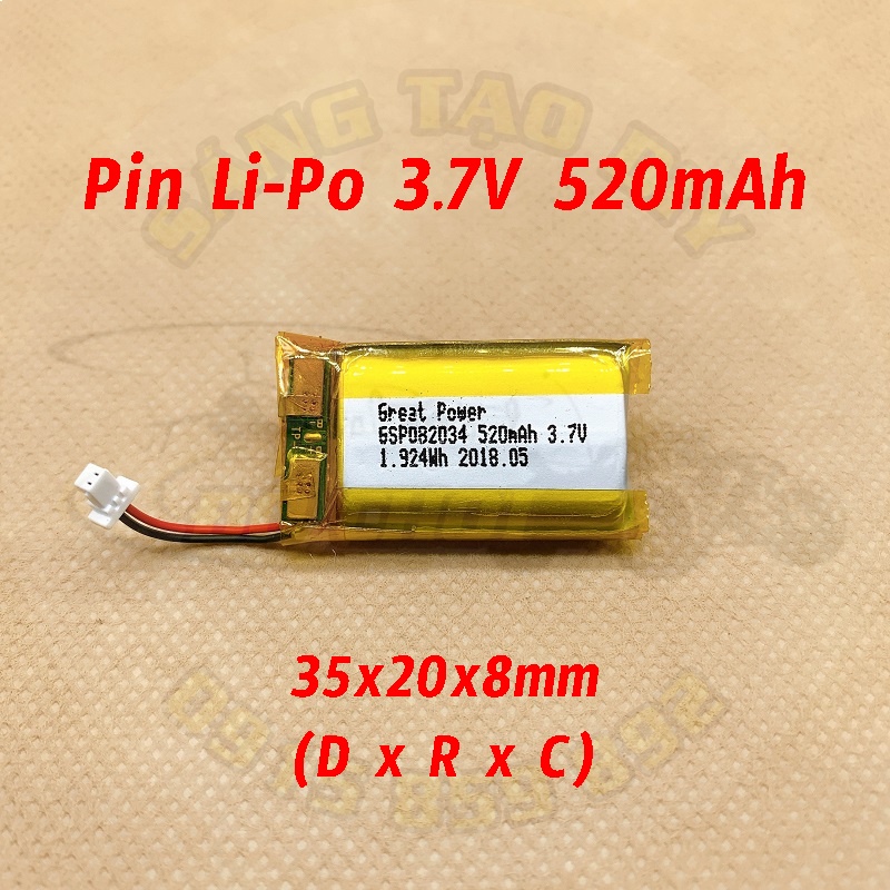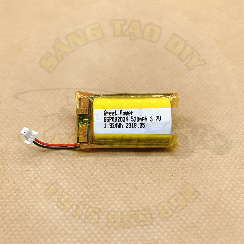 Pin Lithium Polymer 3.7V dung lượng 520 mAh. Pin có mạch bảo vệ và jack cắm