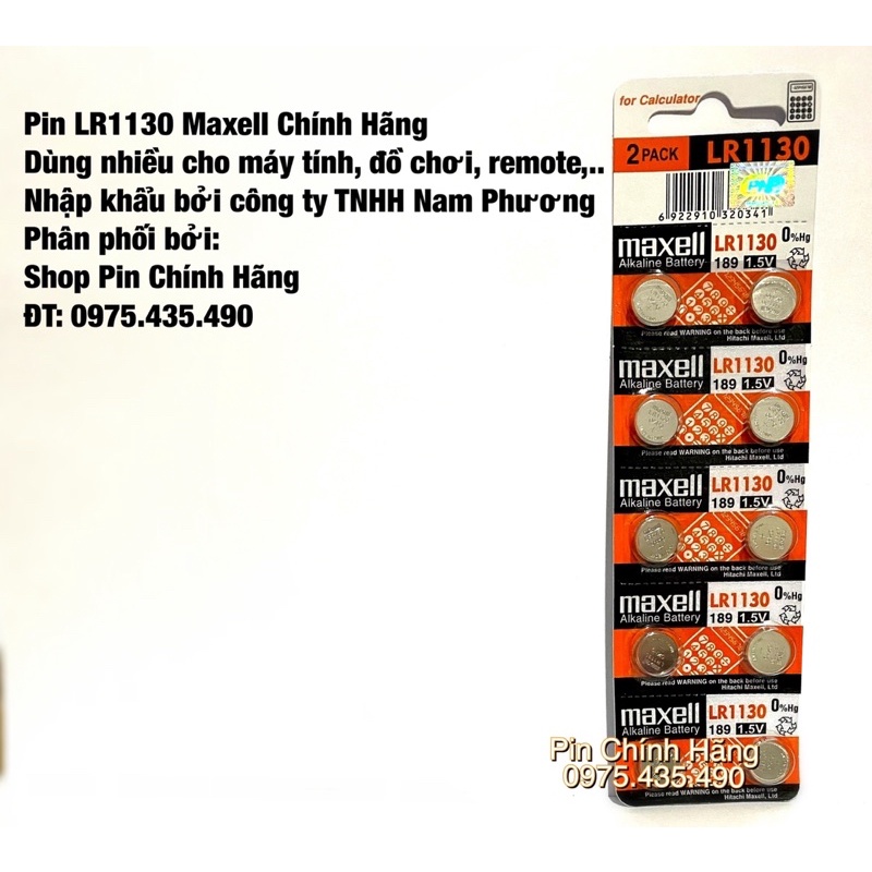 Pin cúc áo LR1130 AG10 189 Maxell sản xuất trên dây chuyền công nghệ Nhật Bản, đóng gói tại Trung quốc.Với chất liệu Alkaline giúp kéo dài thời lượng sử dụng.