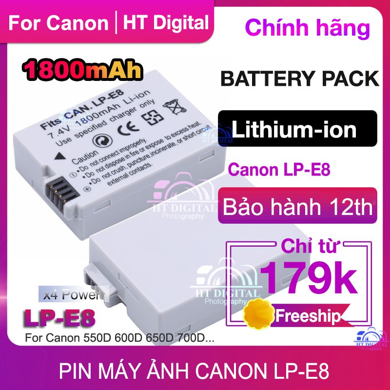 Pin máy ảnh Canon LP-E8 dành cho máy ảnh Canon 550D 600D 650D 700D được sản xuất đạt tiêu chuẩn về pin dành cho máy ảnh Canon. Pin máy ảnh đảm bảo tiêu chuẩn sẽ giúp cho máy ảnh của bạn hoạt động tốt, tăng tuổi thọ máy ảnh, đảm bảo an toàn trong thời gian sử dụng pin.