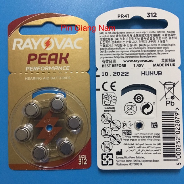 Tên sản phẩm: Pin máy trợ thính Rayovac 312Điện áp: 1.45 volt