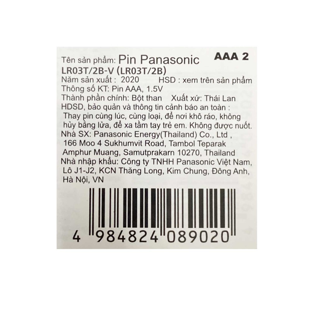 Pin Panasonic AAA chất liệu Alkaline (kiền ) là hãng pin của nhật được sản xuất tại Thái Lan, Là 1 trong những hãng pin phổ biết nhất hiện nay trên thị trường Việt Nam, Pin được phân phối tại nhiều cửa hàng siêu thị trên toàn quốcVới khả năng tích điện lớn , dòng điện ổn định, thời gian lưu trư điện lên đến 10 năm đang dần thay thế các dòng pin chất liệu cacbon với công xuất nhỏ. Pin thường được dùng nhiều trong các thiết bị điêu khiển tivi, điều hòa, máy đo huyết áp, máy ảnh, đồ chơi, đồng hồ , máy đo huyết áp, ....