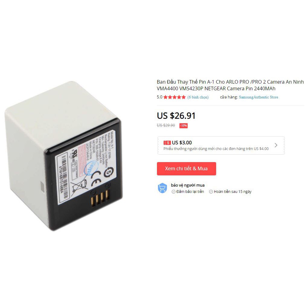 Điện Thoại & Phụ Kiện > Phụ kiện > Sạc dự phòng & Pin > Sạc dự phòng || Pin sạc 2S ARLO A1 Pin Dự Phòng 2440mAh 8.4V Hãng Netgear Camera An Ninh VMA4400 VMS4230PCòn hàng