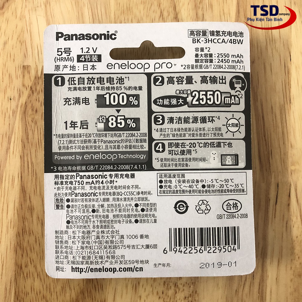 Pin Sạc AA PANASONIC ENELOOP PRO 2550mAh Bản Nội Địa Thị Trường Nhật Bản- Đây là bản cho thị trường Nhật Bản mã BK-3HCCA/4BW nên chất lượng tuyệt đối.