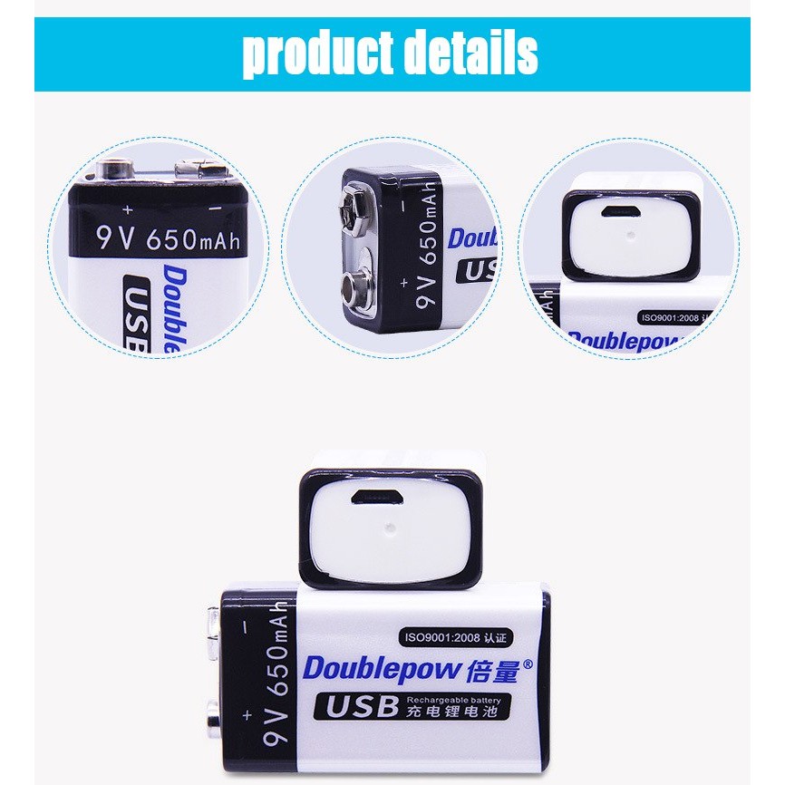 Pin Sạc Cổng Micro USB Doublepow 9V 6F22 650mAh