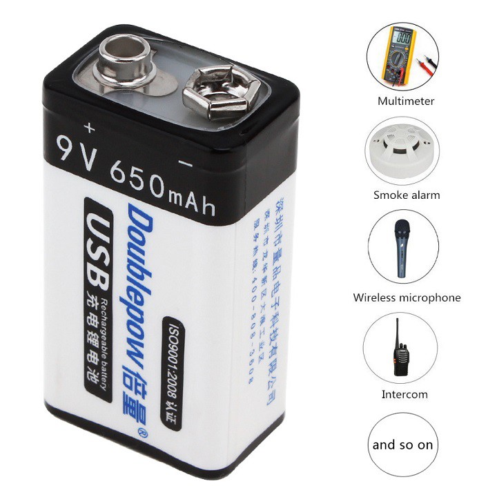 Pin Sạc Cổng Micro USB Doublepow 9V 6F22 650mAh