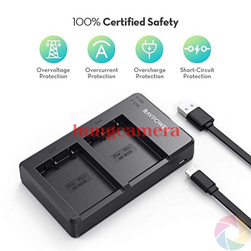 Bộ Pin Sạc đôi cho Fujifilm NP-W126S RAVPower RP-BC023 Chính hãngSản phẩm thương hiệu RAVPower (Mỹ)