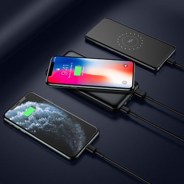 ✔ Hai chế độ sạc cùng lúc 3 thiết bị thông qua 2 cổng sạc ra USB, Type-C và cổng sạc không dây.
