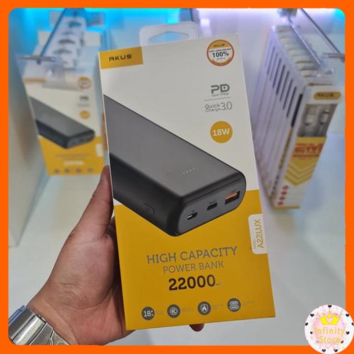 Điện Thoại & Phụ Kiện > Phụ kiện > Sạc dự phòng & Pin > Sạc dự phòng || PIN SẠC DỰ PHÒNG AKUS A22LUX 22000MAH INFINY DECORCòn hàng