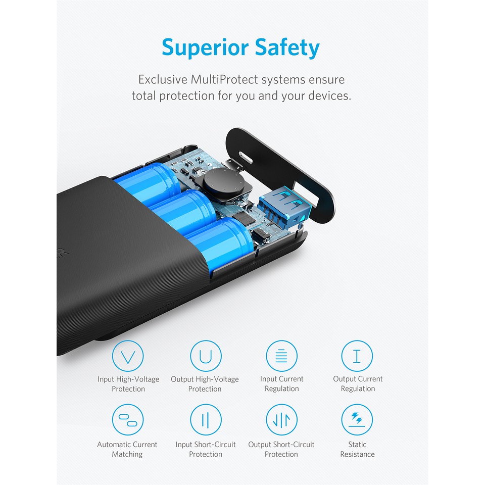 ⚡ Hệ thống an toàn MultiProtect: Tăng cường thêm lớp bảo vệ, kiểm soát nhiệt độ và các tính năng an toàn tiên tiến hơn giữ cho bạn và các thiết bị của bạn khỏi sạc quá dòng, rò rỉ điện.