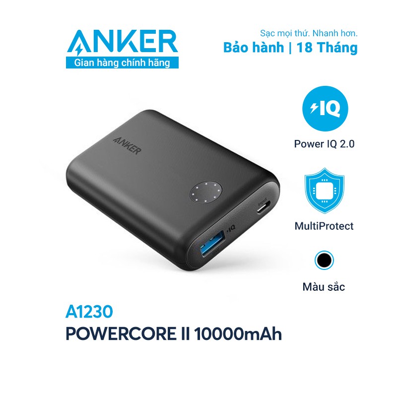 Pin sạc dự phòng ANKER PowerCore II 10000mAh công nghệ PowerIQ 2.0 tương thích tích hợp QC 3.0 18w - A1230