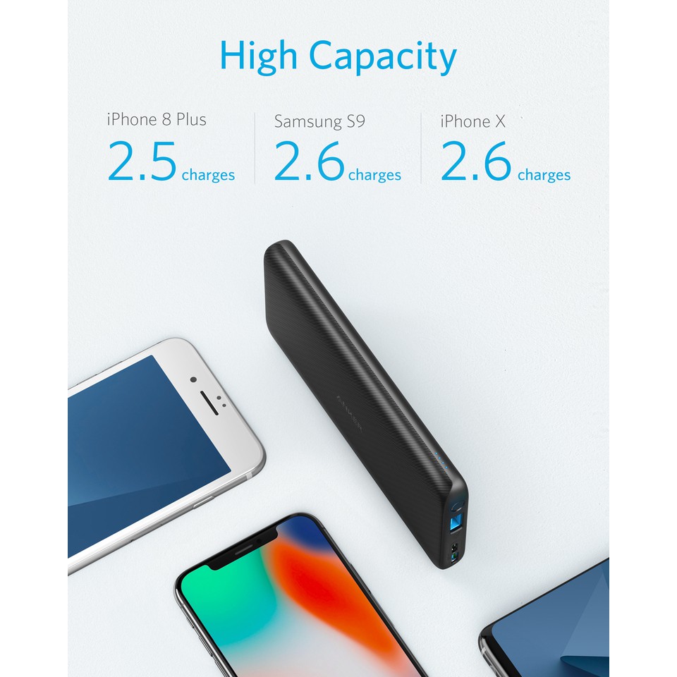Có kích thước mỏng và nhẹ nhưng lại có dung lượng lớn. Đủ cung cấp cho iPhone X, Samsung S9 2.6 lần sạc và 2.5 lần sạc với iPhone 8 Plus.