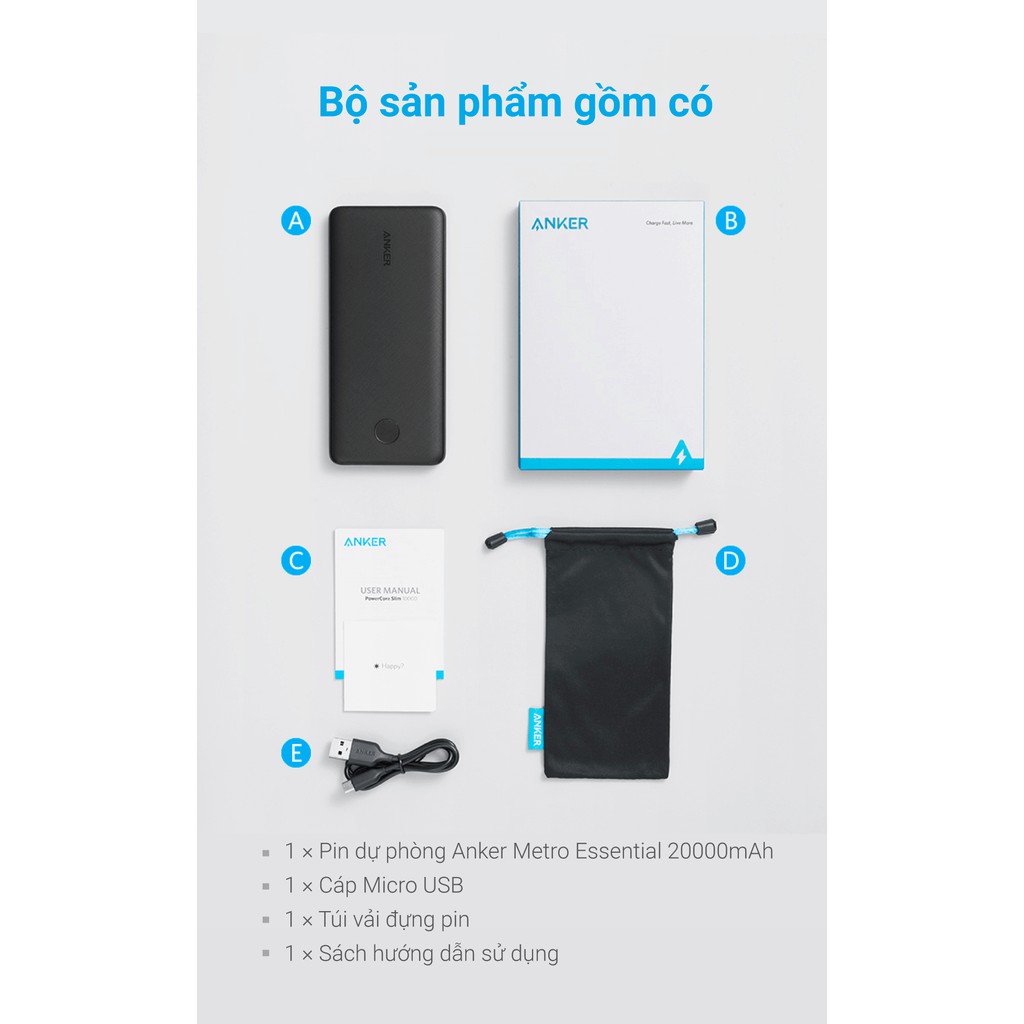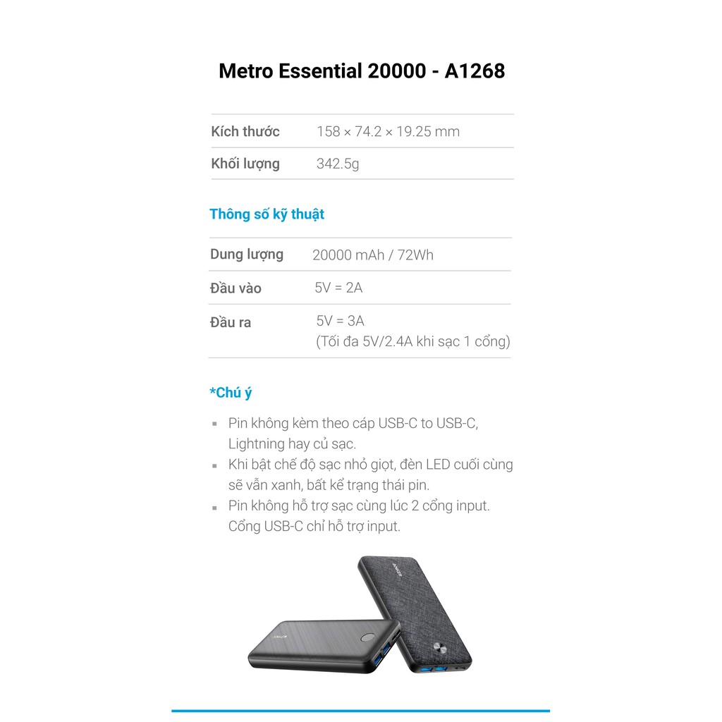 Pin sạc dự phòng ANKER PowerCore (Metro) Essential 20000mAh - A1268