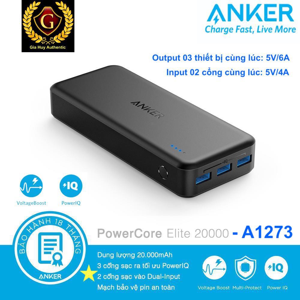 Pin sạc dự phòng Anker Powercore Elite 20000mAh 30W 03 cổng sạc PIQ A1273
