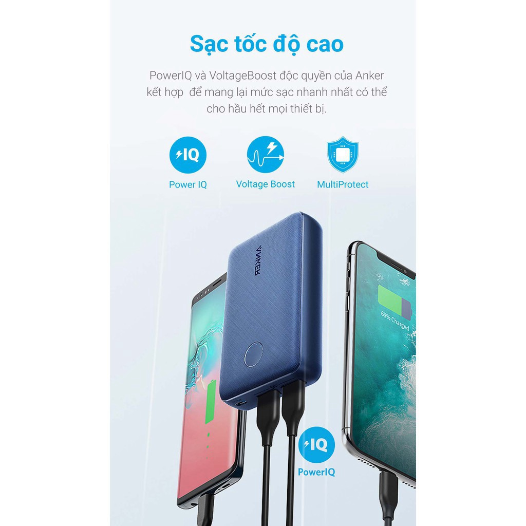 ✔ Pin ngoài của Anker PowerCore có dung lượng 10.000 mAh cung cấp khả năng sạc đồng thời cho hai thiết bị tương thích với dòng điện 2,4 A trên mỗi cổng. Mô hình hỗ trợ công nghệ tự động xác định chế độ sạc IQ phù hợp nhất cho một thiết bị cụ thể. Điều này đảm bảo bổ sung năng lượng nhanh chóng và an toàn cho tất cả các thiết bị di động của bạn.