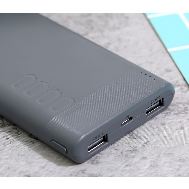 Thiết kế gọn nhẹ, thời trang với 2 màu xám, hồng.Dung lượng pin 10.000 mAh, lõi pin Polymer chất lượng cao.