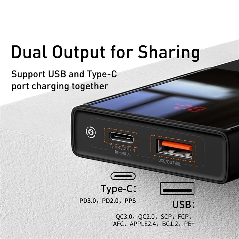 Điện Thoại & Phụ Kiện > Pin sạc dự phòng > 10000 - 20000mAh || Pin Sạc Dự Phòng Baseus BJ02 Màn Hình LED SẠC NHANH 20000mAh USB Type C PD QC 3.0 - Bảo hành chính hãng 1 đổi 1Còn hàng