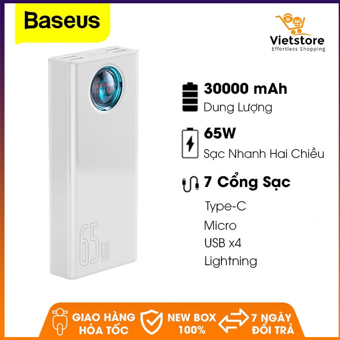 Sản phẩm Pin sạc dự phòng Baseus BS-30KP365 dung lượng 30000mAh - 65W sạc nhanh QC3.0 cho Iphone Ipad Laptop - Phân phối chính hãng VietstoreThương hiệu: BASEUS