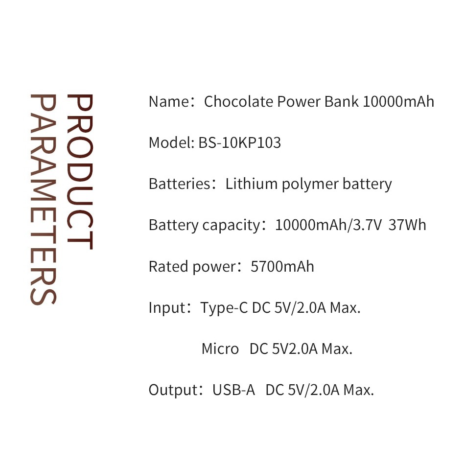 Pin sạc dự phòng Baseus Chocolate Ultra Slim BS-10KP103 10,000 mAh 2A Dual input Type-C/ MicroUSB, siêu mỏng nhẹ