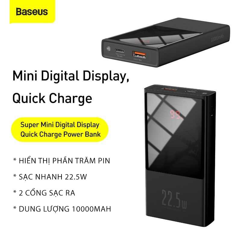 PIN SẠC DỰ PHÒNG BASEUS 10000MAH BASEUS SUPER MINI DIGITAL DISPLAY HỖ TRỢ SẠC NHANH 22.5W CHO IPHONE SAMSUNG XIAOMI OPPOTHÔNG TIN SẢN PHẨM