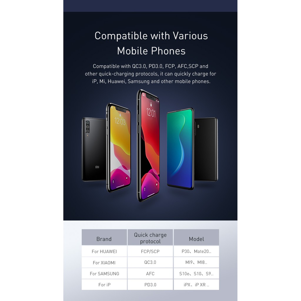Hỗ trợ nhiều chuẩn sạc nhanh : QC3.0, PD3.0, FCP, AFC,..