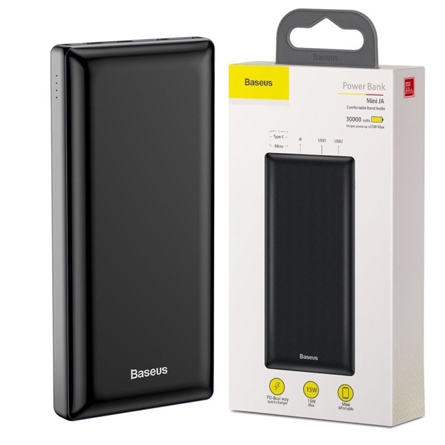 Pin Sạc Dự Phòng Chính Hãng 30000 mAh Power Bank Baseus X30 Mini JA:- Pin Sạc Dự Phòng Power Bank 30000 mAh Baseus X30 Mini JA thiết kế tinh xảo với kiểu dáng sang trọng khá ấn tượng. Tiện lợi và đa chức năng có thể sạc cùng lúc 3 thiết bị với đầu vào và đầu ra 3 cổng.
