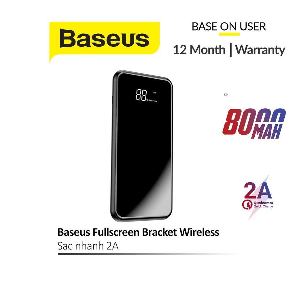 Pin sạc dự phòng Baseus Fullscreen Bracket dung lượng 8000mAh hỗ trợ sạc nhanh 2A tích hợp đèn Led thông minh"Bảo hành: 12 tháng, 1 đổi 1 trong tháng đầu nếu lỗi do nhà sản xuất.