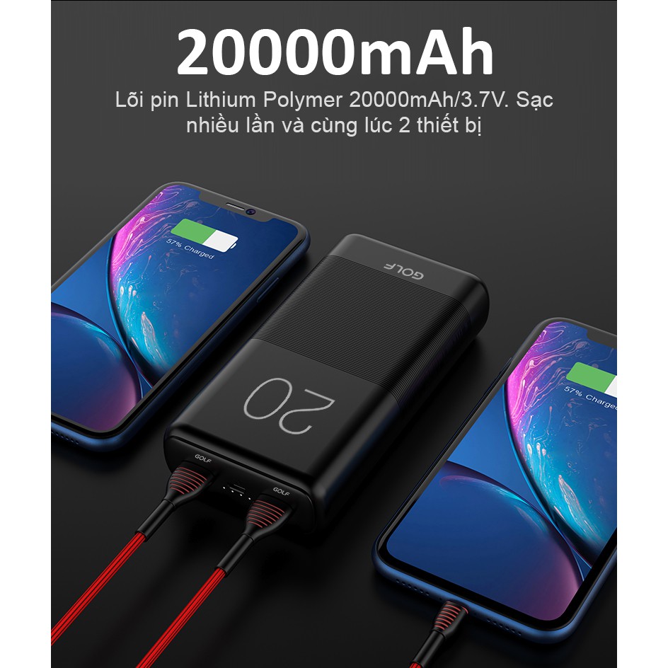 Sạc dự phòng Golf G81 20000mAh/3.7V Li-Polymer🔗 Sản phẩm chính hãng của Golf Shenzhen