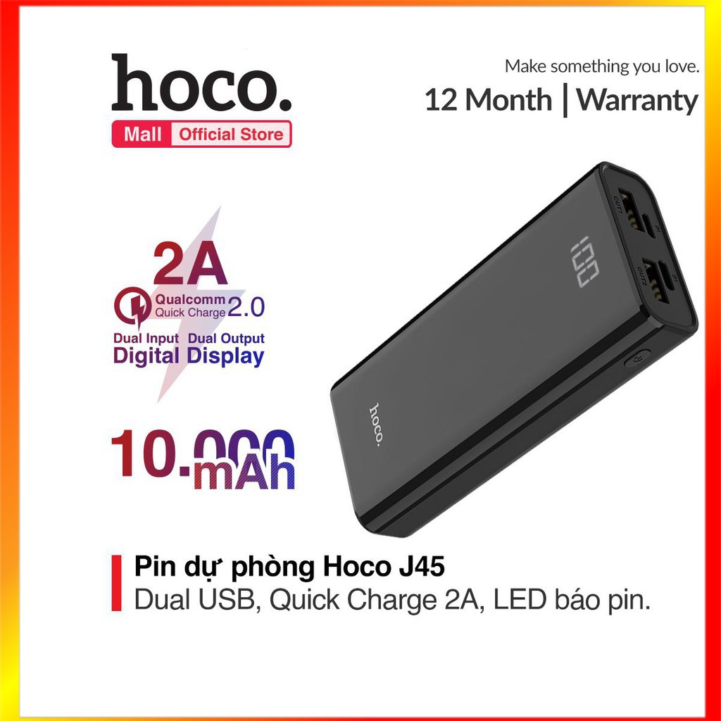 Pin sạc dự phòng hoco J45 dung lượng 10.000mah hỗ trợ 2 cổng sạc có đèn LED báo sạc thông minh - MrPhukien