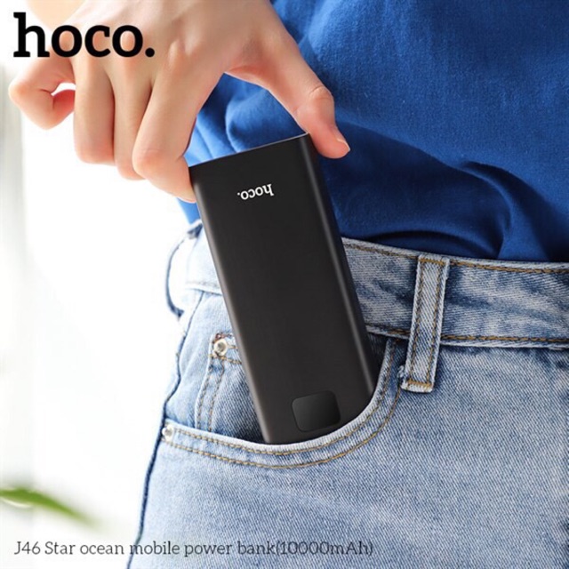 - Pin sạc dự phòng Hoco J46 sở hữu ngoại hình nhỏ gọn như một hộp bánh mini kích thước 11.9 x 5.1x 2.4cm giúp người dùng dễ dàng cầm năm hay bỏ túi. Ẩn chưa trong thân hình nhỏ con là một nguồn năng lượng lớn 10.000mAh rất phù hợp để sử dụng trong ngày.