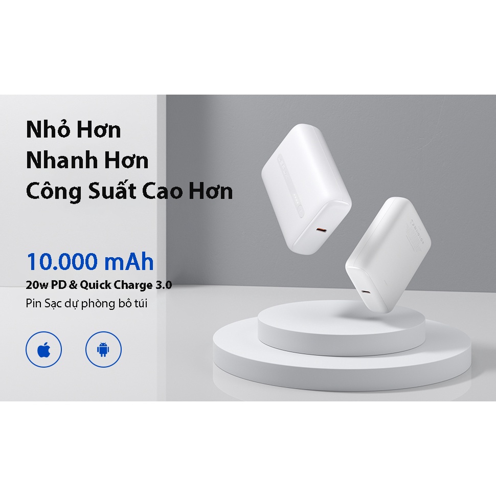 Điện Thoại & Phụ Kiện > Phụ kiện > Sạc dự phòng & Pin > Sạc dự phòng || Pin Sạc Dự Phòng mini PB2201 JSAUX 10.000mAh - Cho iPhone, iPad, Samsung, Oppo, Huawei… Hai Cổng USB-C PD 20W và USB-ACòn hàng