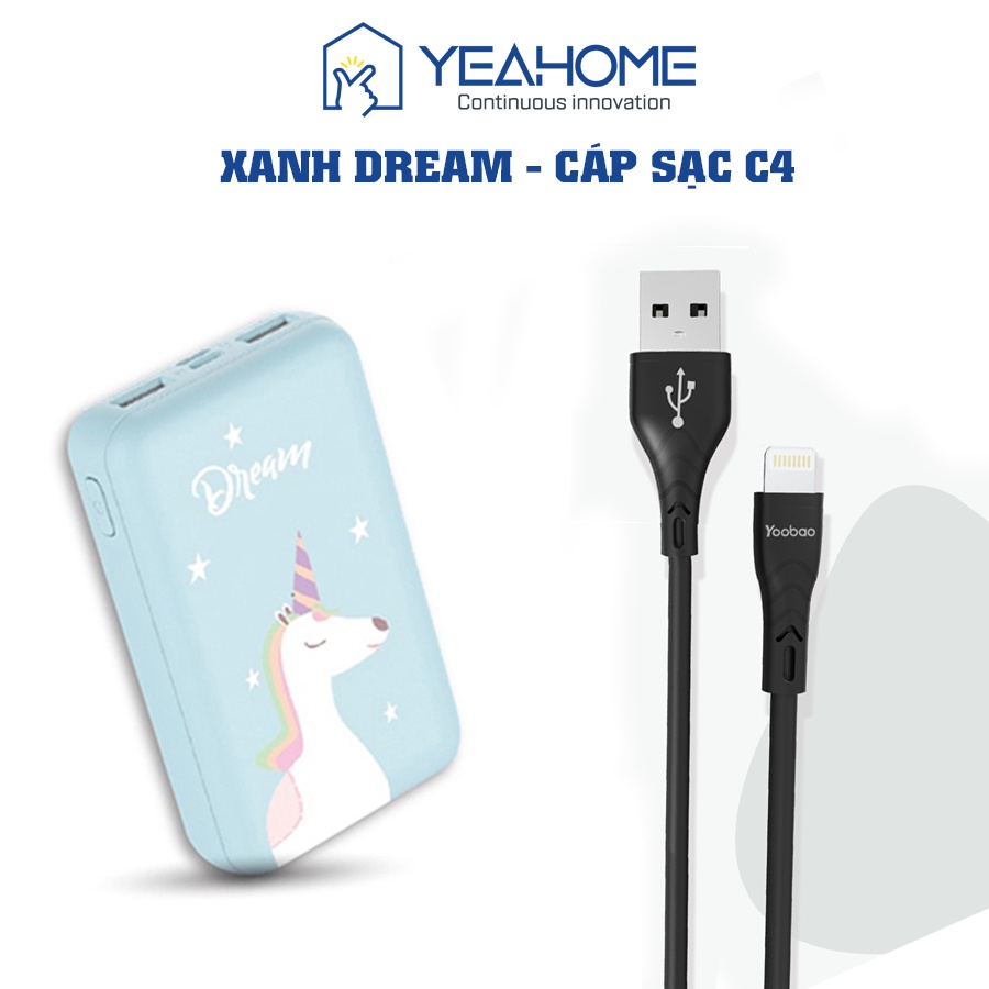 Pin Sạc dự phòng mini Yoobao P10W 10000mAh - Dây cáp sạc cho iPhone iPad đầu Lightning Yoobao C4 dài 1m, cao cấp