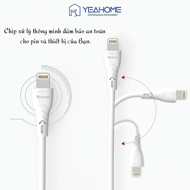 - Dây cáp sạc Yoobao sử dụng chip xử lý thông minh đảm bảo an toàn cho pin và thiết bị