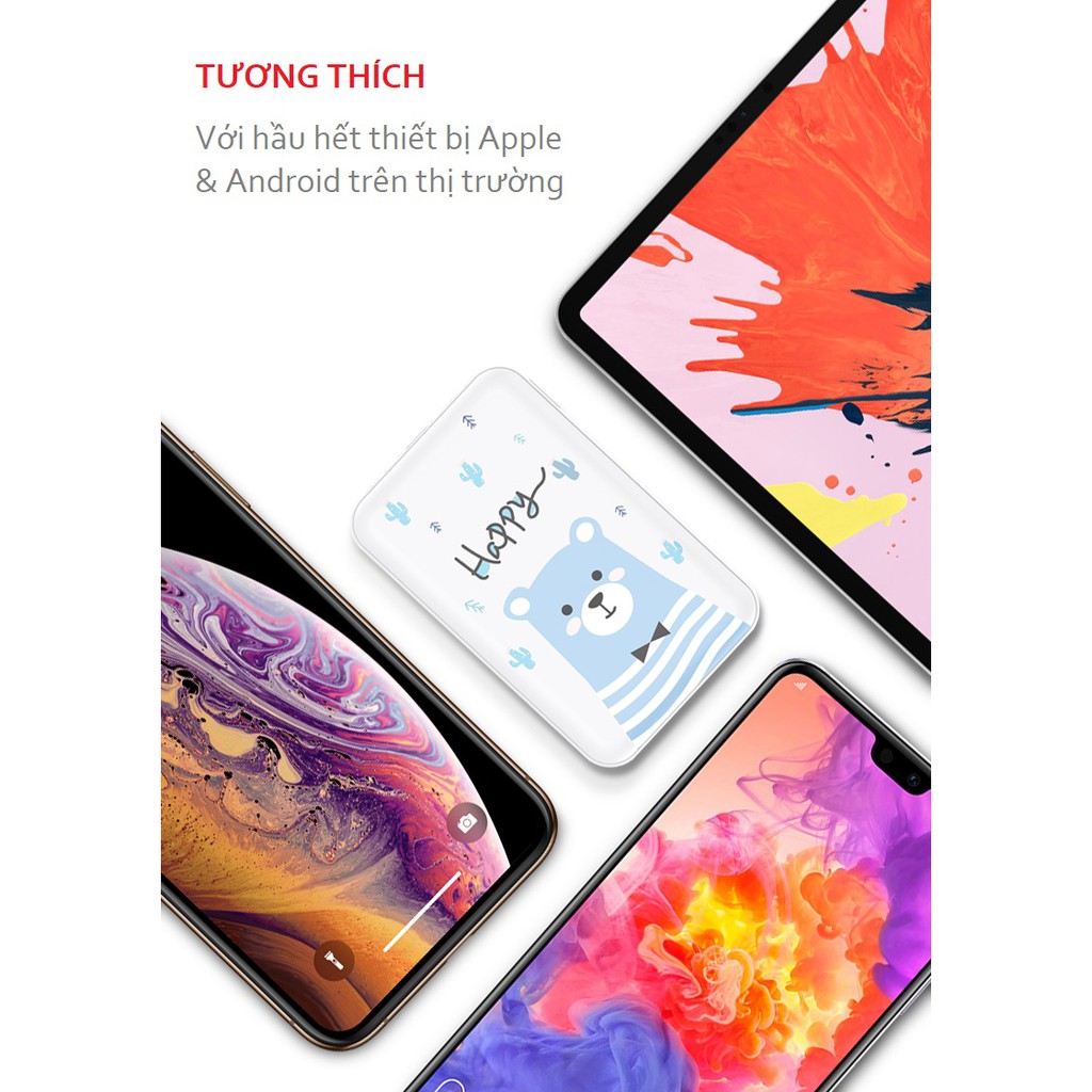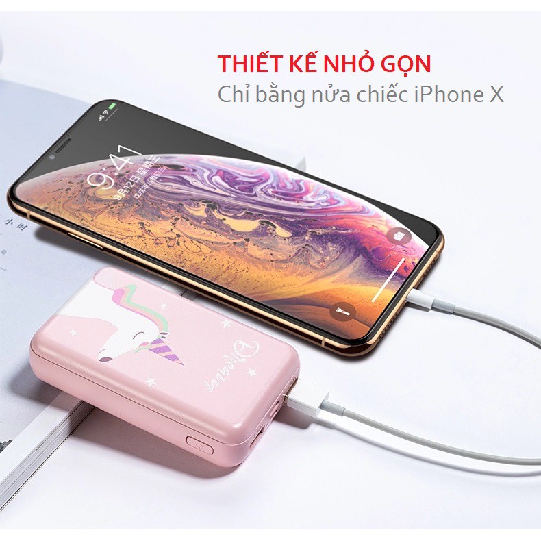 - Dung lượng pin: 10000mAh thoải mái sạc đầy 3-4 lần thiết bị